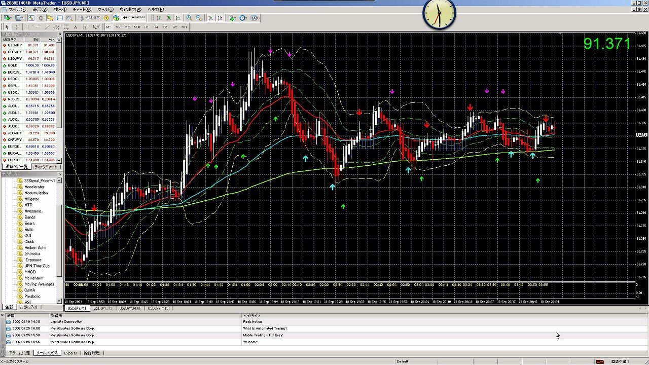 MT4の欠点で、接続先サーバの時間軸が表示されてしまうので、チャートを見直すときに日本時間がわからず困るのですが、これがあれば便利かな。